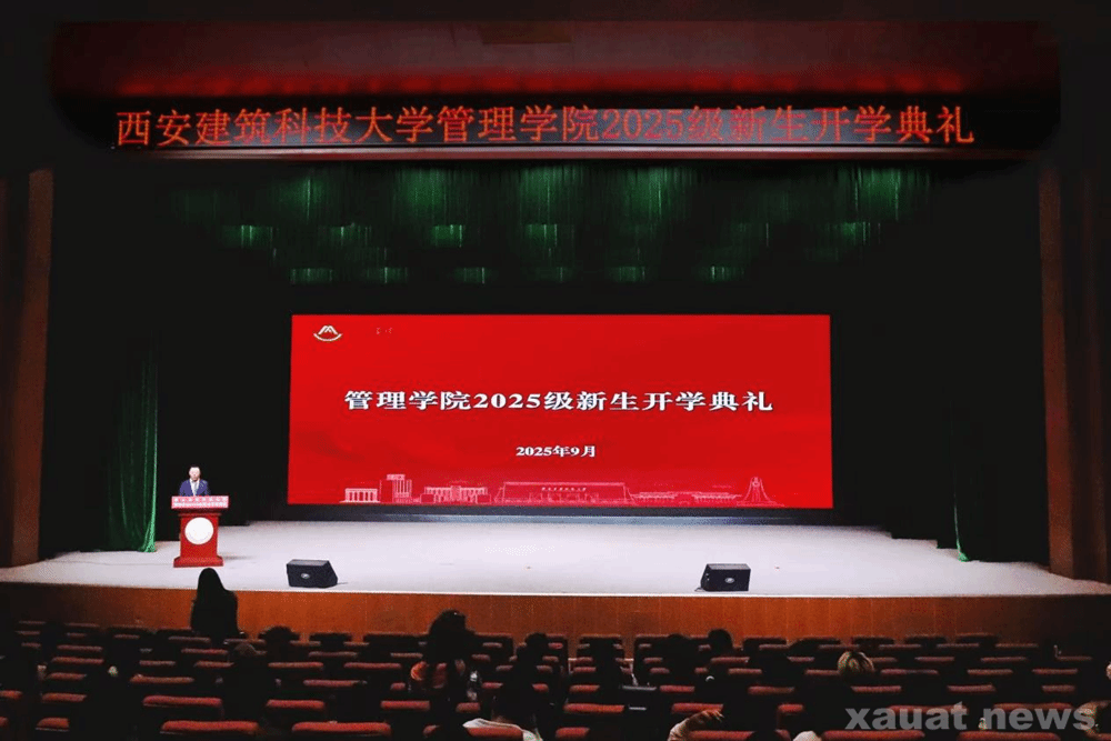 建大新闻网讯 9月23日上午,管理学院在草堂校区紫阁大礼堂举行2025级学生开学典礼。学院领导班子成员、各系负责人、各科室负责人,2025级全体学生班主任、辅导员及学生共同参加开学典礼。