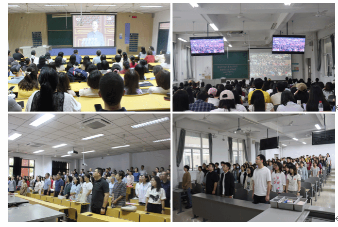 建大新闻网讯 9月3日上午9时,纪念中国人民抗日战争暨世界反法西斯战争胜利80周年大会在北京天安门广场隆重举行。文学院党委组织学院师生分别在南阶203教室和学府城8栋202教室收看大会实况转播。学院党委委员、班子成员、教职员工和学生共计280余人参加观看。