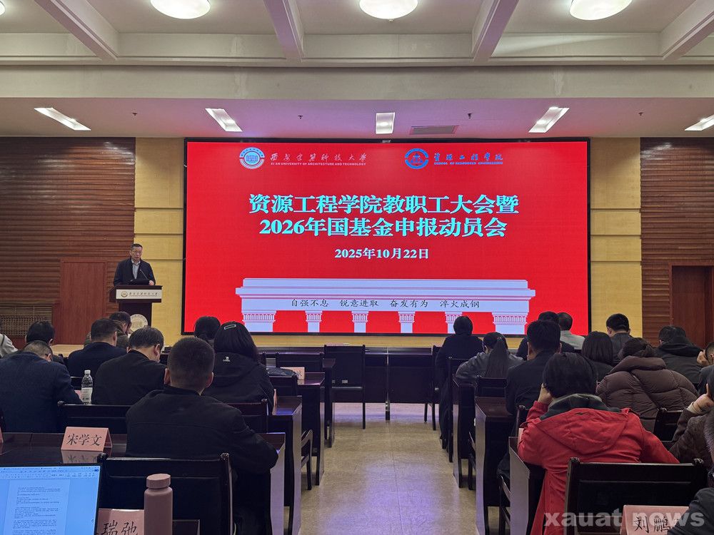 建大新闻网讯 10月22日下午,资源工程学院在工科楼三楼报告厅召开教职工大会暨2026年度国家自然科学基金申报动员会。科学技术研究院副院长瞿伟应邀出席并作指导,学院领导班子及全体教师参加会议。会议由学院党委副书记、副院长李枚阳主持。